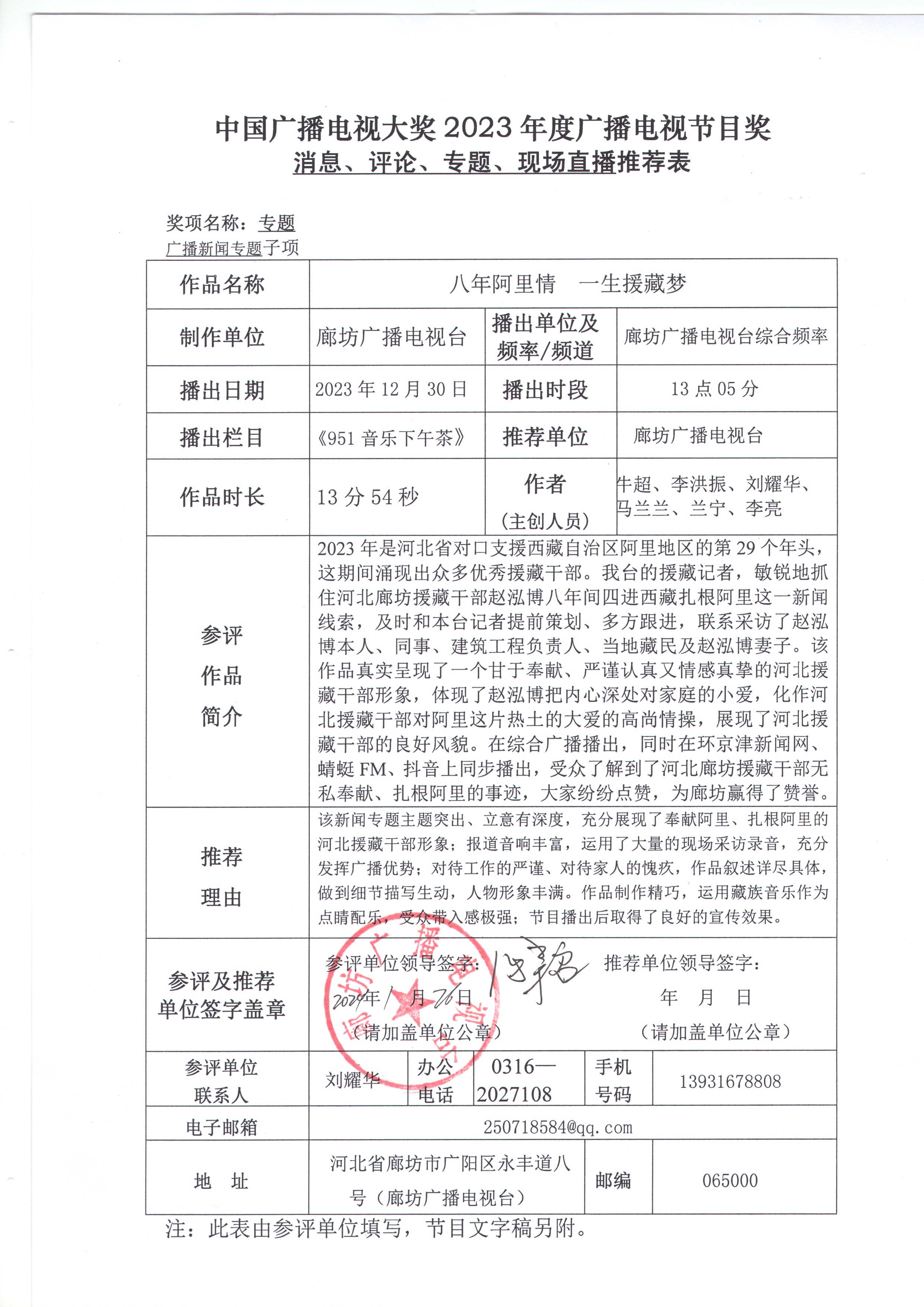 經(jīng)廣泛發(fā)動、民主推薦、專家評議、臺領(lǐng)導(dǎo)審定,現(xiàn)將推薦的廊坊廣播電視臺參評“中國廣播電視大獎2023年度廣播電視節(jié)目獎”參評作品公示如下: