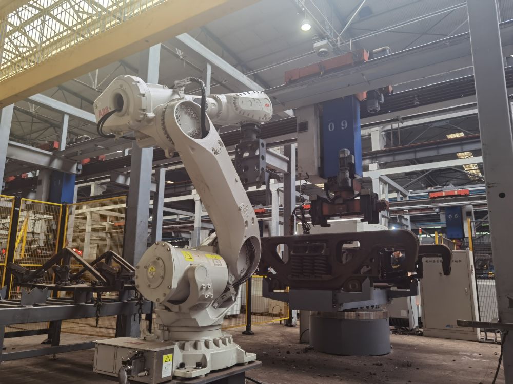 轉(zhuǎn)向架制動(dòng)梁具有保障列車(chē)轉(zhuǎn)向、幫助列車(chē)基礎(chǔ)制動(dòng)等功能,是保障車(chē)輛平穩(wěn)運(yùn)行的關(guān)鍵。在石家莊車(chē)輛段,一臺(tái)制動(dòng)梁分解機(jī)械手正在有條不紊地工作,一旁的AGV智能搬運(yùn)機(jī)器人早已準(zhǔn)備就緒,在裝車(chē)后自動(dòng)導(dǎo)向至對(duì)應(yīng)的檢修流水線,整套流程一氣呵成。