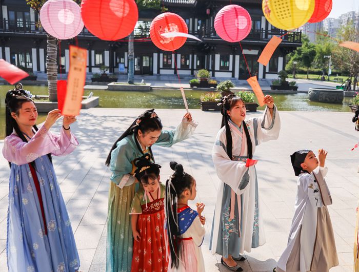 9月6日,漢服愛好者們在安徽省淮北市乾隆湖開展“我們的節(jié)日·中秋”主題活動。新華社發(fā)(王文攝)
