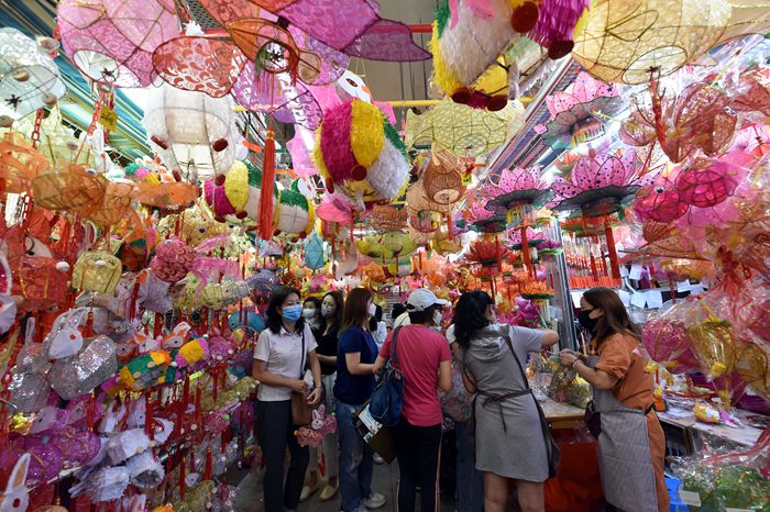 中秋節(jié)臨近,香港元朗大橋街市化身為一年一度的“燈籠街”,各式各樣的手工燈籠掛滿街頭。這是9月2日,市民在香港元朗大橋街市選購燈籠。新華社記者盧炳輝攝