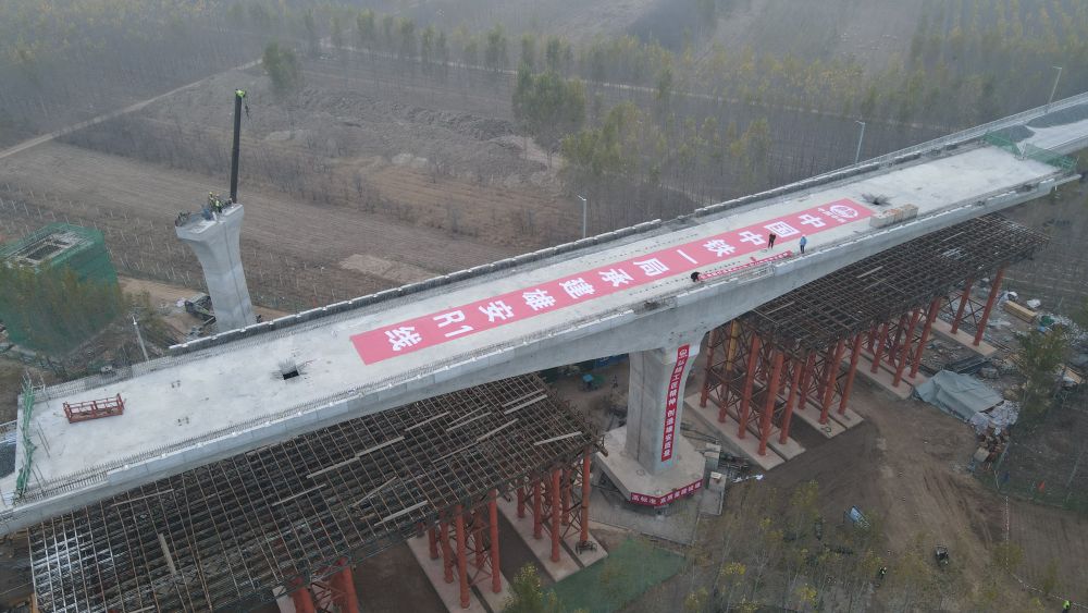 11日,雄安新區(qū)至北京大興國際機(jī)場快線(R1線)跨津興鐵路現(xiàn)澆梁成功轉(zhuǎn)體合龍。(受訪者供圖)