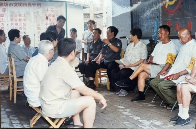 93歲的馬溪斌老人回憶說,上世紀八九十年代經(jīng)??吹揭蝗捍髦?ldquo;黃袖標”的治安員每天穿梭在大街小巷,也總能看到他們圍坐在派出所民警身邊有說有笑,很多老百姓的急難愁盼就是在“談笑風生”中解決的。