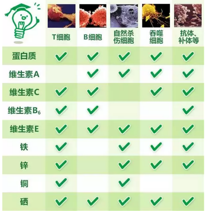 礦物質(zhì)家族中的鐵、鋅、銅、硒也是提升免疫力的好幫手!鐵能增強(qiáng)免疫細(xì)胞、中性粒細(xì)胞和吞噬細(xì)胞的吞噬功能,增強(qiáng)機(jī)體的抗感染能力。硒具有明顯的免疫增強(qiáng)作用,維持細(xì)胞內(nèi)硒的一定水平對保護(hù)機(jī)體健康、增強(qiáng)抗病能力具有重要意義。鋅在免疫細(xì)胞T淋巴細(xì)胞的功能與體液免疫功能的維持上有重要的作用。