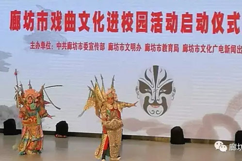 近年來(lái),廊坊市高度重視優(yōu)秀傳統(tǒng)文化的傳承和弘揚(yáng)。組織開展了“傳統(tǒng)文化進(jìn)校園”活動(dòng),將國(guó)學(xué)誦讀、書法藝術(shù)、戲曲文化、非遺文化等作為傳統(tǒng)文化進(jìn)校園的重要內(nèi)容。此次活動(dòng)既是貫徹全省戲曲文化進(jìn)校園的具體舉措,也是弘揚(yáng)傳統(tǒng)文化的重要途徑。
