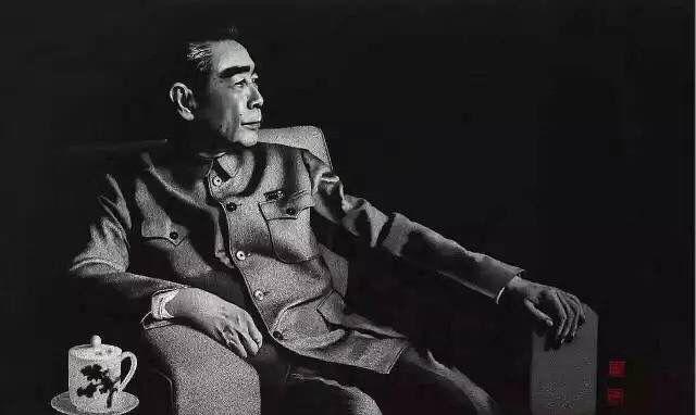 作品中的周總理在深深的背景中,面容消瘦,緊鎖著眉頭、額頭上繃起了青筋、面頰爬上了老人斑,雙目深邃而堅(jiān)毅地注視著前方。每個(gè)看到這幅作品的人都會(huì)凝視良久,這就是活在每個(gè)中國(guó)人心中,為國(guó)家、為人民鞠躬盡瘁的周總理!