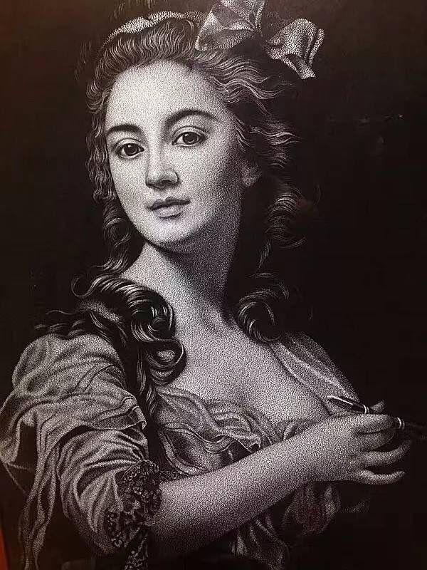她說(shuō),人物的面部表情和立體感是靠黑白灰來(lái)體現(xiàn),黑白灰是靠手腕上的力度來(lái)掌握,力度的大小要用心和眼睛來(lái)控制,必須心手合一,恰到好處。每次做人物眼睛時(shí)必須全神貫注甚至是高度緊張,每個(gè)細(xì)節(jié)都必須是一氣呵成。稍有一丁點(diǎn)兒不慎,就嚴(yán)重影響了人物的面目表情,一旦出錯(cuò)便無(wú)法修補(bǔ)。