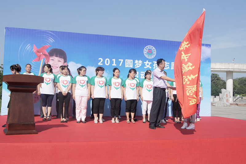 隨后,市衛(wèi)生計(jì)生委黨組副書記、計(jì)生協(xié)常務(wù)副會(huì)長王文倉為志愿者隊(duì)伍授旗。