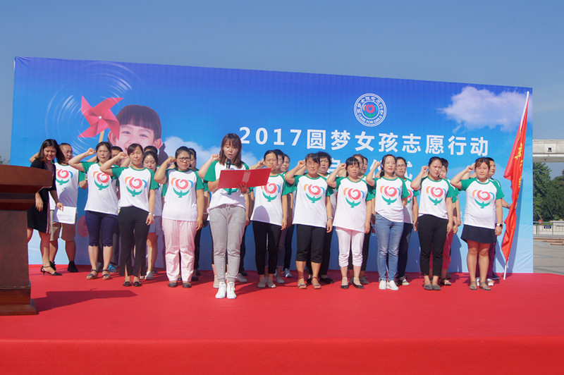 志愿者代表李亮帶領(lǐng)出席現(xiàn)場儀式的26名志愿者進(jìn)行宣誓,并代表志愿者團(tuán)隊(duì)發(fā)言,她在發(fā)言中號(hào)召大家積極參與到這一公益活動(dòng)中來,為更多的貧困女孩點(diǎn)亮她們心中的夢(mèng)想。