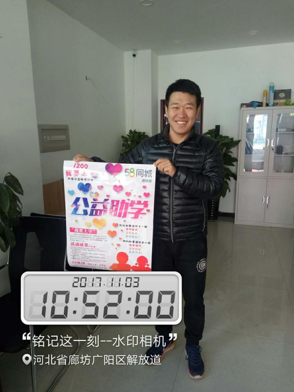 今年活動(dòng)得到了58集團(tuán)的高度重視,在全國(guó)7個(gè)大區(qū)進(jìn)行生根落地,更是得到了全國(guó)代理商的熱情響應(yīng)。其中華北地區(qū)除正常捐款外,58同城房產(chǎn)華北區(qū)代理商之一廊坊市萬(wàn)美網(wǎng)絡(luò)科技有限公司更是身體力行,牽頭舉辦了公益拍賣(mài)活動(dòng),同時(shí)會(huì)將此次拍賣(mài)商品所有的盈利全部進(jìn)行捐贈(zèng)。為此我們采訪了公司的總經(jīng)理張程,聽(tīng)張總分享和58集團(tuán)一起參與本次活動(dòng)的心路歷程。