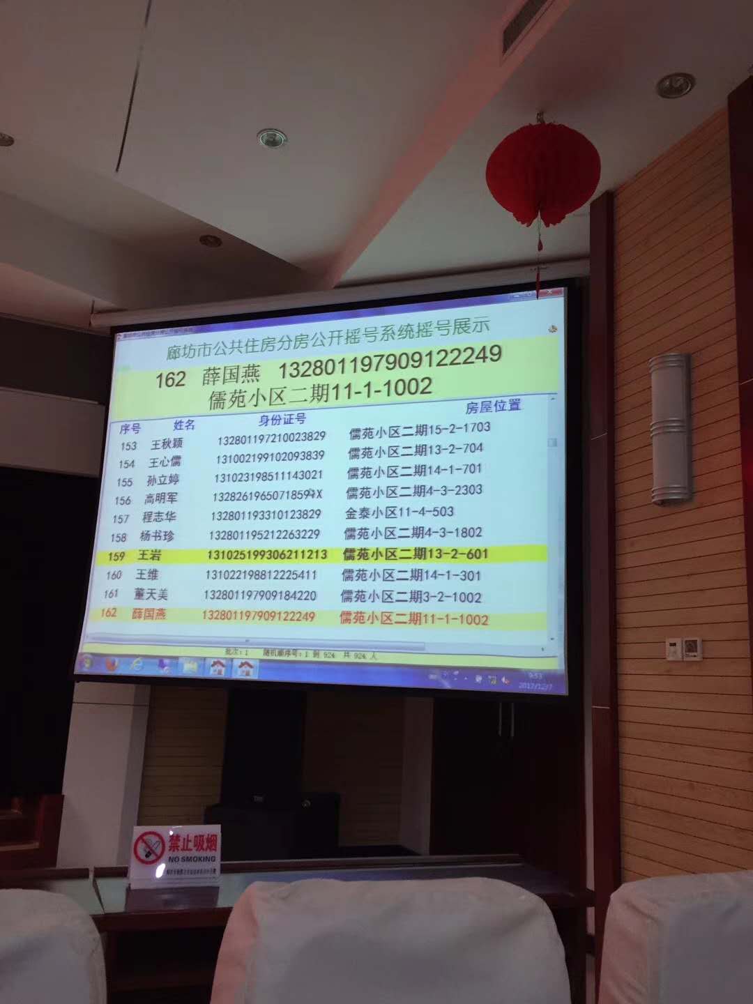 在現(xiàn)場,隨著搖號代表按動搖號按鈕,2017年公共住房公開搖號配租正式開始。本次公共住房實物配租搖號采取電腦隨機產(chǎn)生一戶一房的配租方式,分兩輪完成。第一輪是對全部搖號家庭進行實物配租搖號;第二輪,對未中號家庭進行輪候順序搖號,待有空置房源后,集中組織輪候家庭按照順序號先后次序進行選房。配租房源為2015-2017年期間清退出來的空置房源,總計為924套。