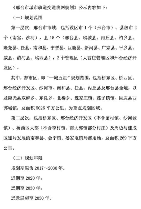 關于邢臺市城市軌道交通線網(wǎng)規(guī)劃方案的公示