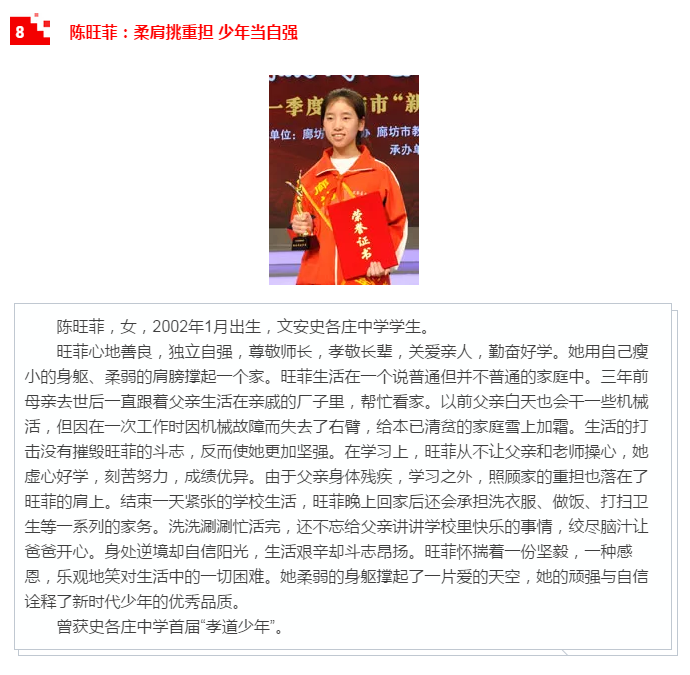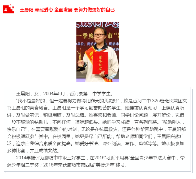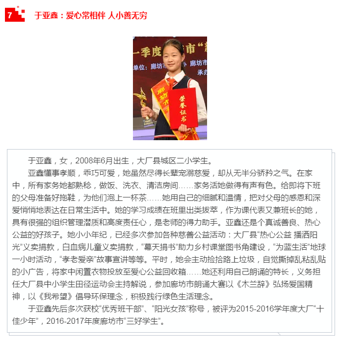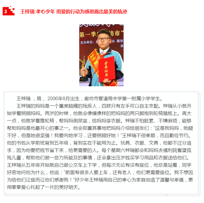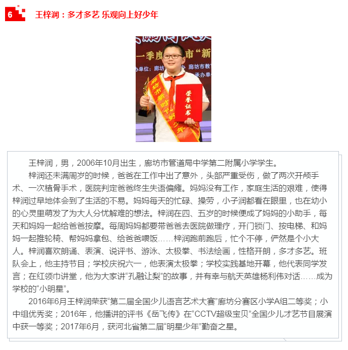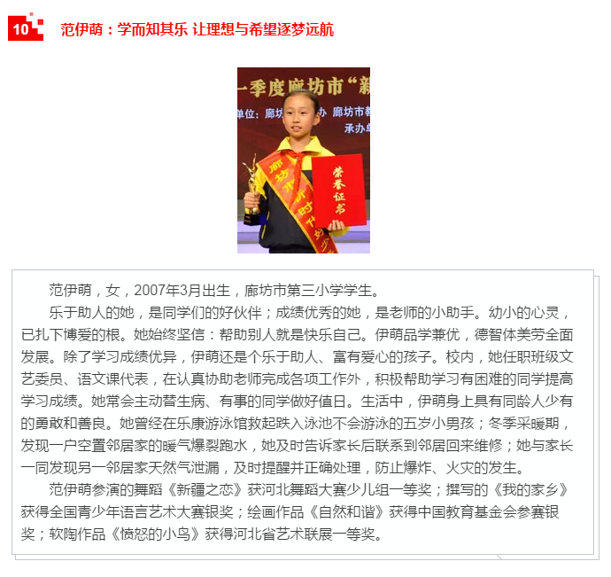 本次活動(dòng)由廊坊市文明辦、市教育局、團(tuán)市委、市婦聯(lián)、市關(guān)工委主辦,共向全市發(fā)布了十位“新時(shí)代好少年”先進(jìn)事跡。