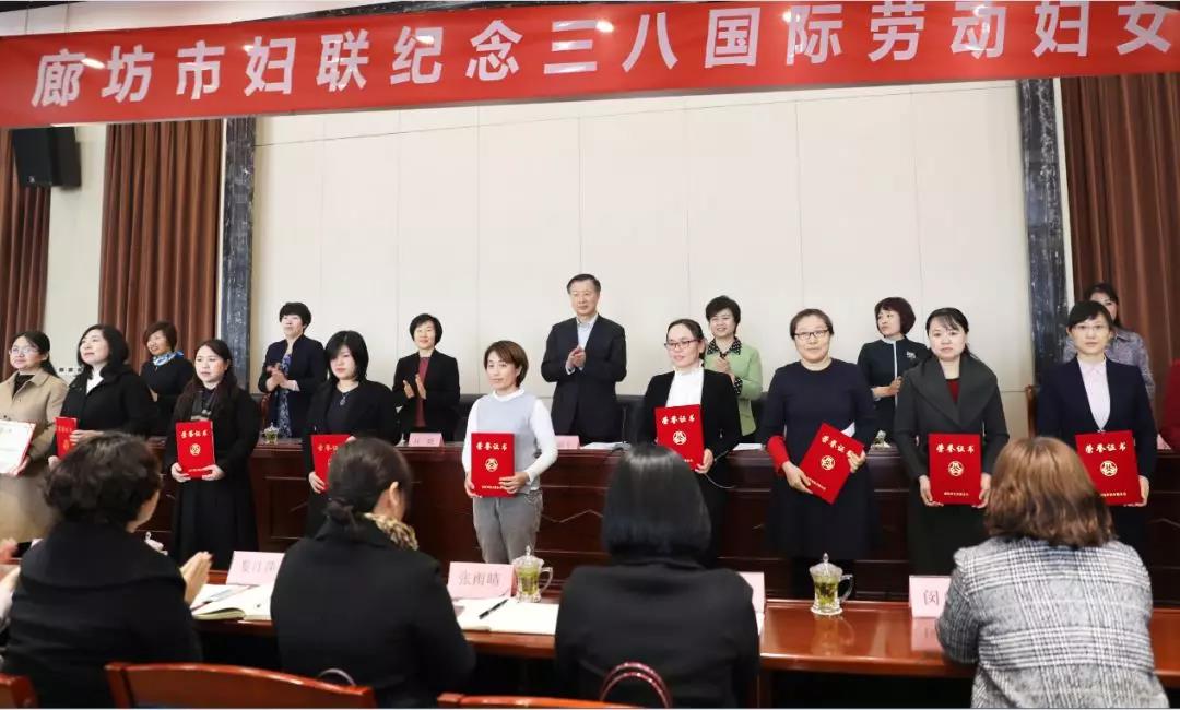 會(huì)上,為榮獲2018年度廊坊市“三八”紅旗手標(biāo)兵和、“三八”紅旗集體代表頒發(fā)了榮譽(yù)證書和獎(jiǎng)牌。