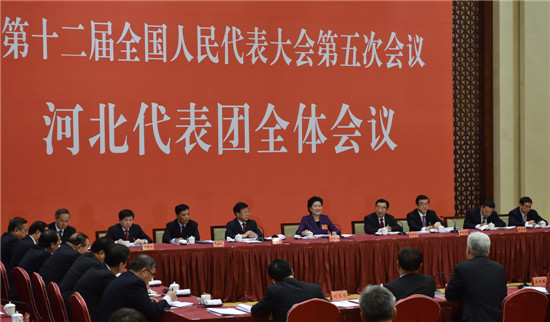 3月5日,出席十二屆全國人大五次會議的河北代表團舉行全體會議,審議李克強總理所作的政府工作報告。記者 孟宇光 郭 昭攝