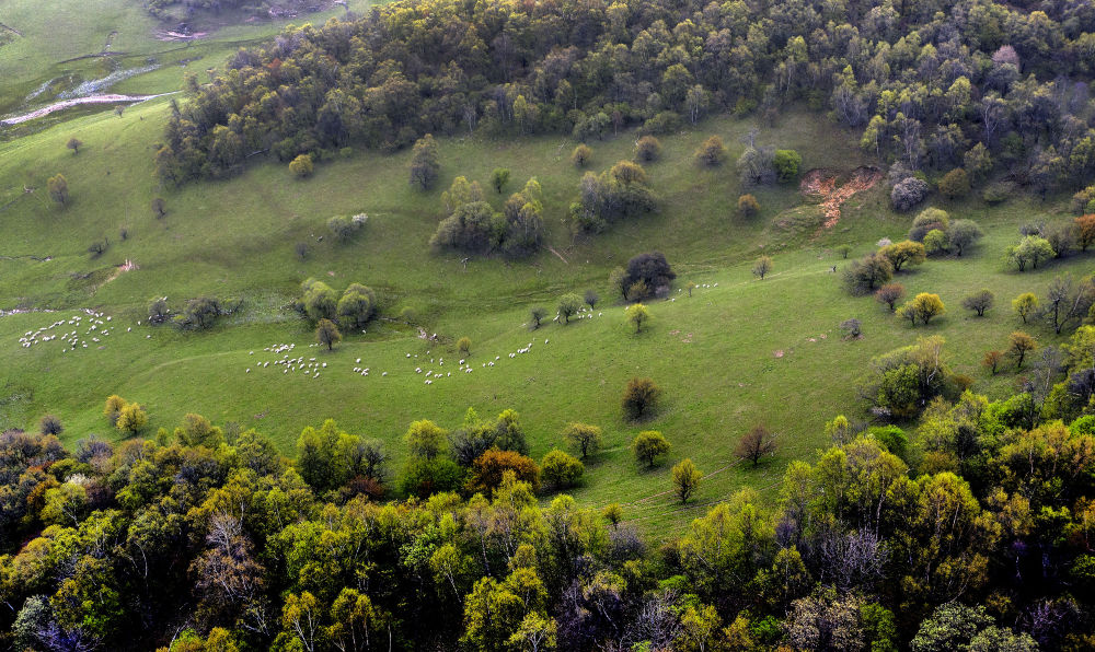 2021年5月4日拍攝的陜西隴縣關(guān)山草原旅游風(fēng)景區(qū)一角(無人機照片)。新華社記者 陶明 攝