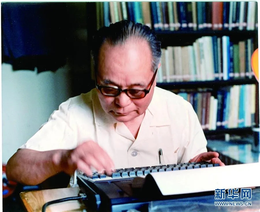 程開甲在打字機(jī)上撰寫論文(資料照片)。新華社發(fā)
