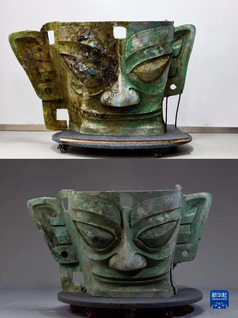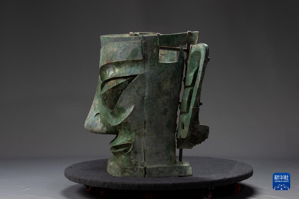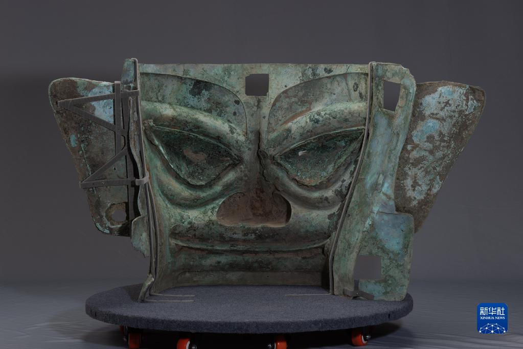 這是修復(fù)完成的青銅大面具側(cè)面(資料圖片)。新華社發(fā)(國(guó)家文物局供圖)
