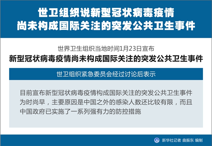 世界衛(wèi)生組織23日宣布,新型冠狀病毒疫情尚未構(gòu)成國際關注的突發(fā)公共衛(wèi)生事件。